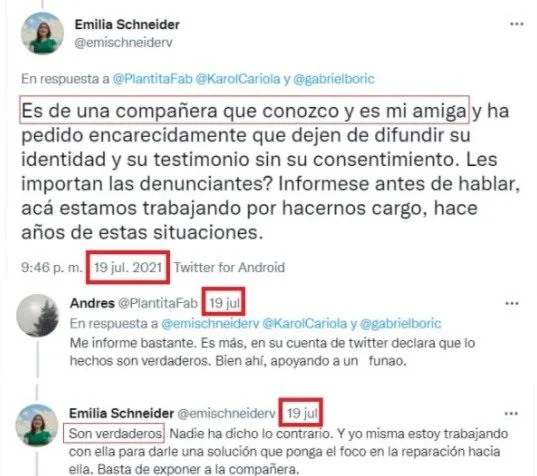 Pero los señalamientos no son un secreto. Incluso dirigentes como Emilia Scheider, quien es activista LGTB+ tuiteó respecto al caso y lo confirmó.