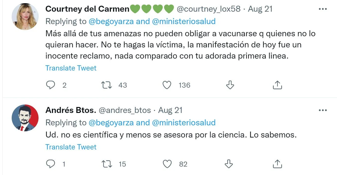 Sin embargo, la mayoría de los comentarios que Yarza recibió en Twitter fueron para desafiar su autoritarismo y refutar su discurso victimista y pseudocientífico. Destacamos aquí algunos de los tuits más relevantes: