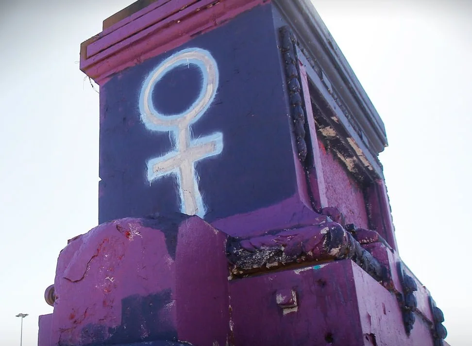 Feministas inician jornada de vandalismo rayando Plaza Baquedano