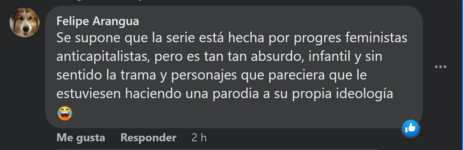 Sin embargo, esta caricatura hilarante no pasó inadvertida para los espectadores, quienes se burlaron abiertamente de esta patética trama. Finalmente, se destacaron también las redes de influencia que rodean a Amazon Prime, los fondos del Estado y la productora Fábula, encargada de la serie, lo que revela un acuerdo entre elites culturales para el pago de favores entre ellos mediante el compadrazgo, lo cual es discordante con el mensaje insurrecto que propone la serie, aliñado con la música de la zapatista Anita Tijoux, quien también aparece en la serie con un personaje irrelevante.