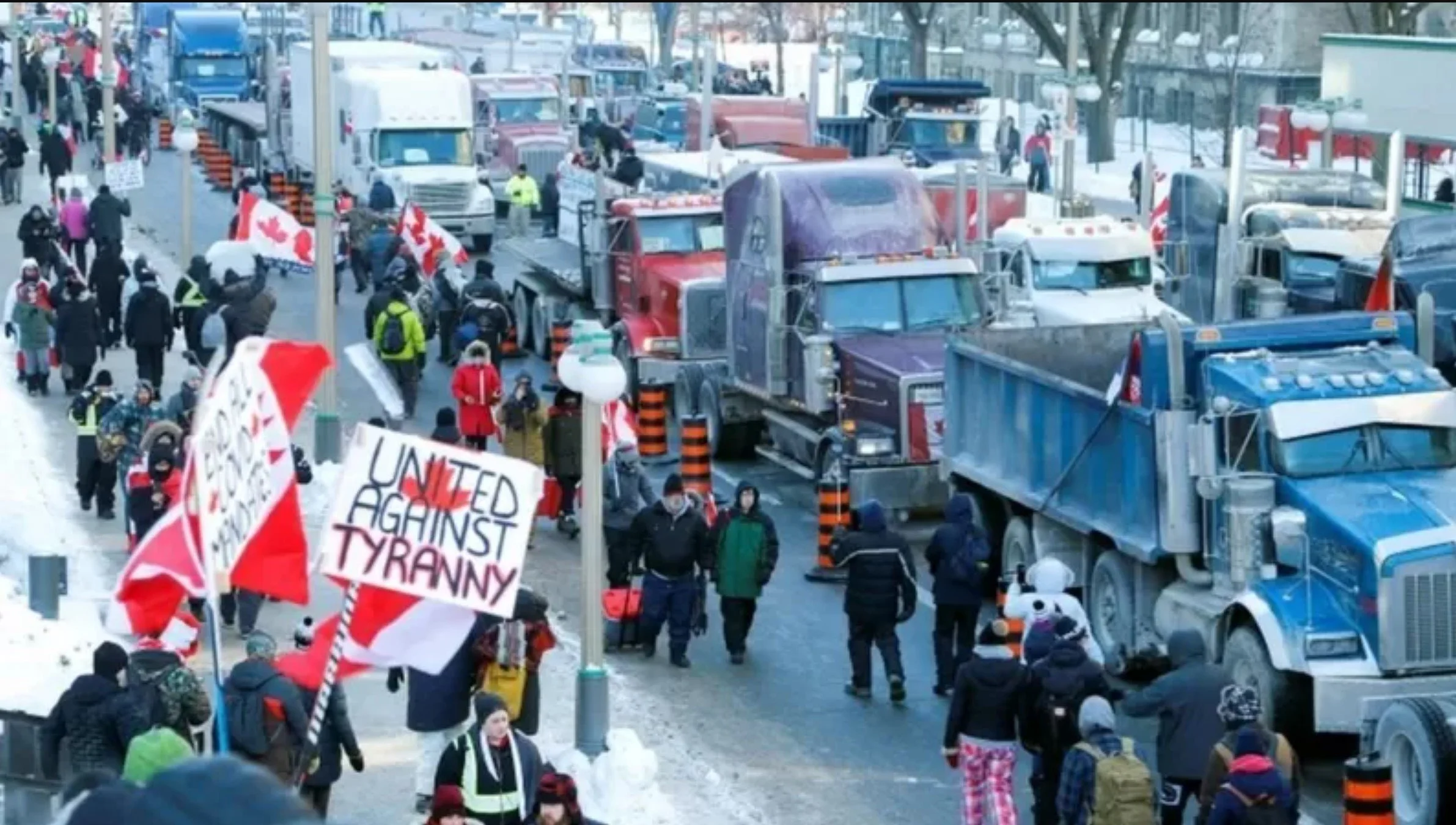 En una jornada histórica, cerca de 50.000 camioneros canadienses se encuentran manifestándose en las principales rutas de todo Canadá y en las fronteras con Estados Unidos debido a la totalitaria medida que tomó el gobierno socialista de Justin Trudeau el pasado 15 de enero, según la cual, todos los transportistas sean sometidos a la vacunación experimental contra el virus chino para poder cruzar la frontera y realizar sus actividades, o de lo contrario se les forzará a estar en cuarentenas de hasta 15 días, perdiendo importantes oportunidades laborales, lo que los llevaría a la ruina a ellos y sus familias.