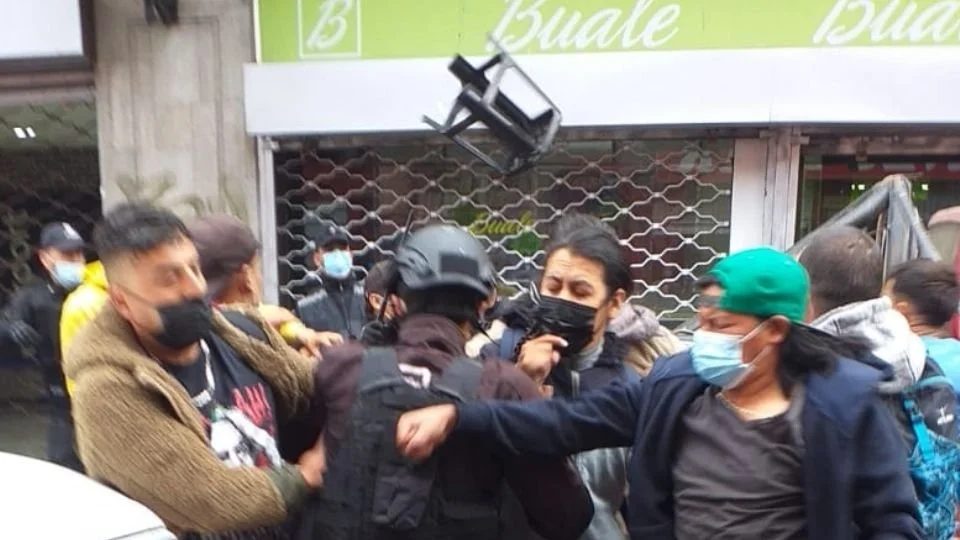 En los registros audiovisuales se puede ver a los ambulantes que instalan sus negocios sin permiso municipal como el resto de los vendedores, agrediendo con palos, piedras y golpes a los funcionarios públicos. Hechos que fueron registrados por los transeúntes, locatarios de los distintos negocios y residentes de los edificios ubicados en el lugar.